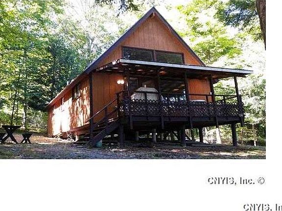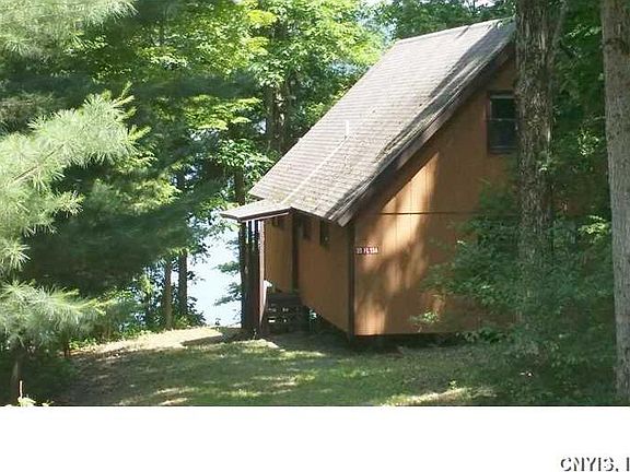 3-Season Lake House, 2 acres, Level 166' Lakefront in a cove improved with expansive stone seawall, just 25 stairs to sunny, grassy lawn, docks, mooring from cottage above. You'll love this family compound retreat along southwest shore, great road access and ample parking. Make memories on pristine Skaneateles Lake -all the comforts of home including washer, dryer, shower bath, 3 bedrooms plus sleeping loft, electric heat, septic, well, 24' x 24' garage/barn w/plumbing capped for potential to finish as 2nd living space and/or subdivide. Driveway to left of garage goes right to the lakeshore.