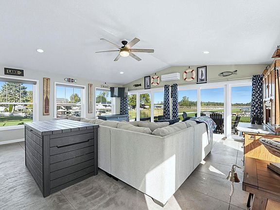 Rare waterfront opportunity on Lake Pleasant! This property offers 40 feet of private lake frontage plus channel cove frontage to store your boats and toys, with a convenient kayak launch. Features include a long lakefront yard, updated seawall, composite deck with SunSetter awning, a large all-seasons sunroom with panoramic views, and a sandy waterfront fire pit area for relaxing by the lake. Lake Pleasant is a premier all-sports lake, perfect for wake surfing, skiing, and all your lake activities. Enjoy unobstructed views of protected wetlands across the water. Just minutes from I-80/90, I-69, the outlet malls, and all that Steuben County has to offer. Furnishings negotiable.