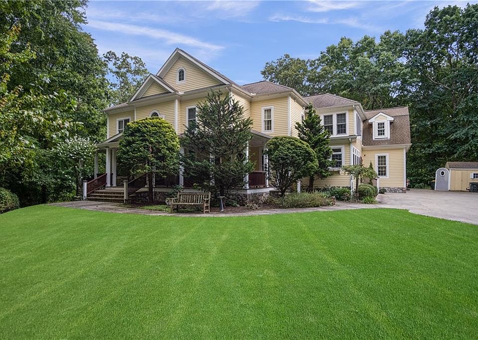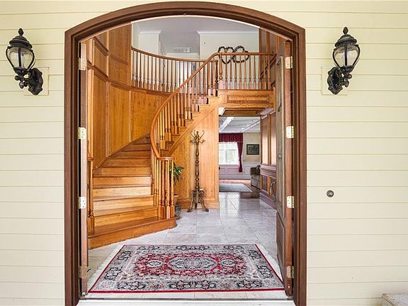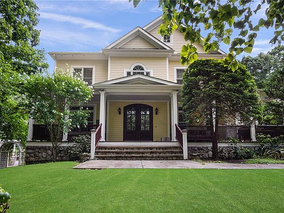 Beautiful custom crafted Colonial with covered wraparound front porch nestled on 5 plus private acres of seclusion offering approximately 6,000 square feet of spectacular living space. Solid Mahogany front doors lead to a massive spectacular 2 story entry foyer covered in hand crafted cherry wood wall surfaces with matching curved stairway and granite flooring leading to a stunning living room with an impressive coffered ceiling and beautiful fireplace wall enhanced with floor to ceiling stone along with an end to end wall of windows overlooking the private yard and pool area. The spacious wood paneled library/office/study is an inviting space to work and study and a perfect retreat space. Adjacent to the fireplaced den is the fantastic, fully equipped chef's kitchen offering a spacious dining area with built-in bench, a long center island with additional seating and a spacious walk-in pantry. The adjacent 3 car garage is accessed via a convenient mud room. The ventilated smoking room adjacent to the main foyer can also serve as an additional home office. The second floor with access from two stairways offers a fantastic primary suite sanctuary with its gas fireplace, coffered ceiling, French doors leading to an adjacent home office/reading room/ workout room, massive walk-in closet/dressing room with customized organization and sumptuous bathroom with separated water closet, walk in shower and soaking tub. Staycation in your own resort! Additional 6.5 acre lot available.