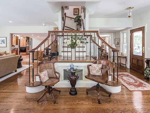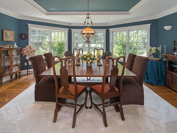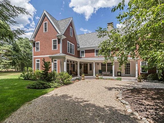 Down a tree lined driveway and backed by acres of fields is a unique New England Farmhouse. This beautiful custom home is set on 1.47 acres of level land with mature specimen trees and gardens. 4-Bedroom classic with more than 6000 Sq.ft of light flooded living space overlooking a meadow with sunset views. Artistic hearth room with fieldstone fireplace connects open family room to must see cathedral ceiling kitchen with hidden walk-in pantry. Master suite with private balcony. Great closets and storage throughout. Finished lower level and walk-up attic.. 6 bedroom septic. Fantastic neighborhood 7/10ths of a mile to town center. Top schools. Great commute.