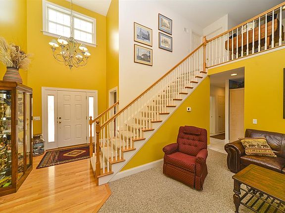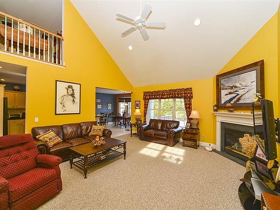 Impeccably maintained energy efficient home featuring 9' ceilings, vaulted ceilings, 1st floor master bedroom suite, hardwood & tile flooring, 1st floor laundry, corian kitchen counters & gas fireplace in great room. Additional features include covered front porch, partially covered maintenance free Trex deck, central vacuum, GEO thermal heating & cooling system, water softener, in-ground lawn and flower bed irrigation system