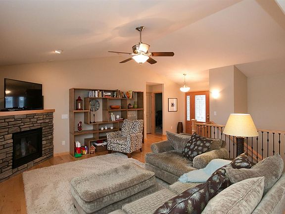 Beautiful view in this 5 bedroom 3 bath ranch walkout home with almost 2500 sqft. Maple hardwood floors through the main living area, kitchen and dining room. Maple cabinets. Granite countertops in the kitchen, bathrooms and laundry sink. Stainless GE appliances including a Bosch dishwasher. Jacuzzi shower/tub with tile surround and tile flooring in the master bathroom. 3 car garage. Central Vac. Amazing pond view off the deck and walkout lower level. Fenced in back yard.