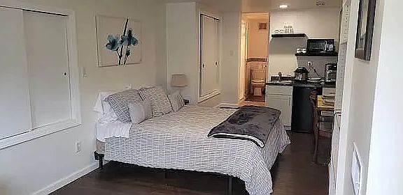 Beautiful spacious backyardShared laundryMini fridgeStand-up showerComfy queen sized bedBeautiful hardwood floor throughout