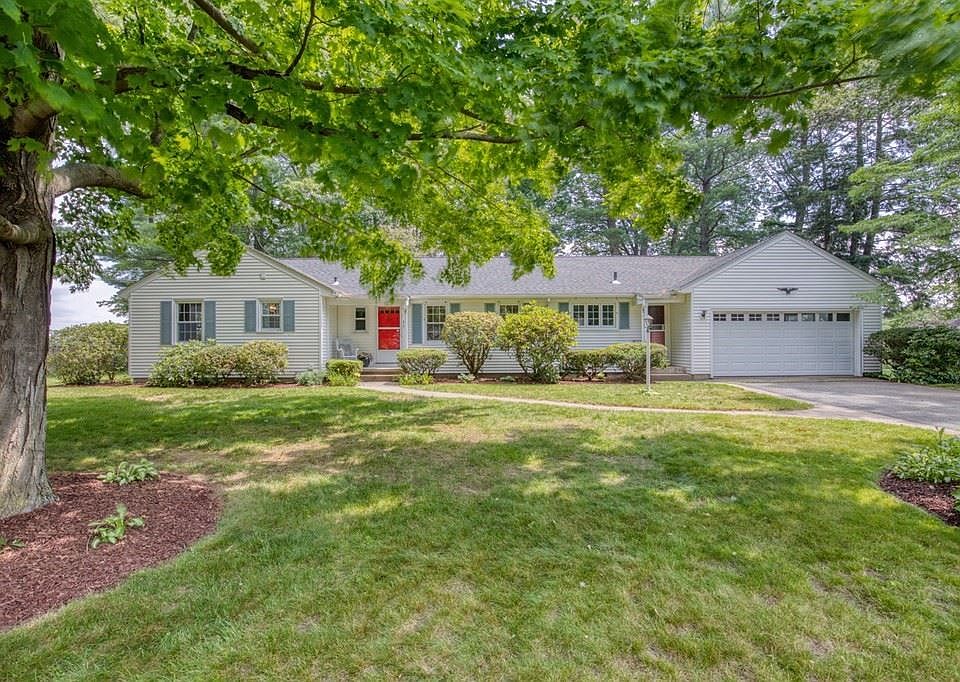 SINGLE FLOOR LIVING- Move right into this ranch-style home located in walking distance from Westfield State University and Stanley Park. Entertain in the large open concept family room and dining room featuring gleaming wood floors, a stunning brick fireplace, and picture windows overlooking the private backyard and scenic views. Off the dining room, you'll find the kitchen and access to the bright sunroom perfect for summer gatherings. The master suite offers hardwood floors and an suite master bath. Two large guest bedrooms with hardwood floors and good sized closets. The expansive lower level provides great opportunity to be finished as additional living space. NEW Roof and Garage Doors ( 2021). Deferred showings until the open house, Sat 6/26 12:00PM-1:30PM.