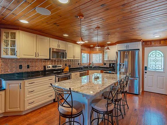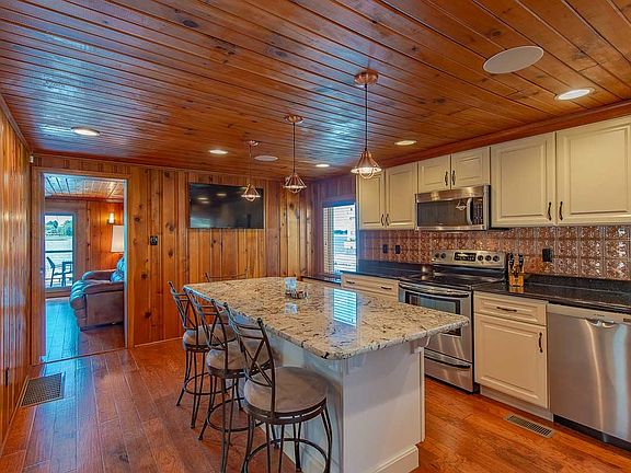 - AMENITIES: Ceiling Fan(s), Detector-Smoke, Breakfast Bar, Cable Ready, Deck Open, Eat-In Kitchen, Workshop, Cable Available, Garage Door Opener, Main Level Bedroom Suite, Disposal, Landscaped, Ceiling-9+, Alarm System-Security, Patio Covered, Built-In Entertainment Ct, Stand Up Shower, Countertops-Stone, Kitchen Island, Porch Open, Garage-Heated, Deck on Waterfront, Built-In Speaker System, Pocket Doors, Antenna, Custom Cabinetry, Garage Utilities, Steam Shower, Alarm System-Sec. Cameras