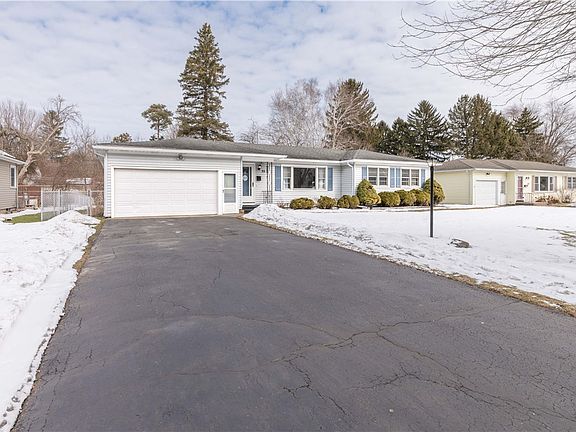 Charming Ranch Home in Gates! Welcome to this beautifully maintained property that offers everything you need for comfortable living. The exterior boasts stunning landscaping, a fully fenced backyard, and a spacious deck— perfect for outdoor gatherings. Enjoy your morning coffee in the enclosed porch overlooking the serene backyard. Step inside to find a spacious living room filled with natural light and a large eat-in kitchen featuring white cabinets and a generous dining space. The hardwood floors and 3 bedrooms add warmth and character. The finished basement offers additional living space, complete with a full bath and a separate mechanic/laundry room. Parking is a breeze with the attached 2-car garage and a double-wide driveway. Plus it is ready for Greenlight internet! Conveniently located near shopping and dining, this home is a must-see! Come fall in love today! Delayed negotiations until 3/10/2025 at 11am.