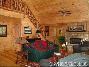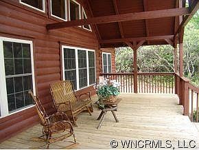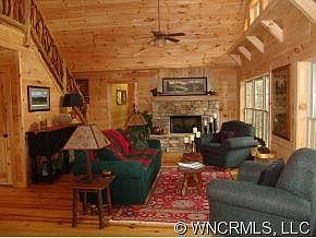 This new Blue Ridge Log Cabin retains the traditional beauty of a log home without the rough-hewn edge. A large great room with cathedral ceiling, framed glass gable & natural wood interior is accentuated by the hand crafted laurel handrailing & native stone fireplace. The master & one guest bedroom are conveniently located on the main level with a second guest suite upstairs. Two covered porches for outdoor living! Existing furniture included.
