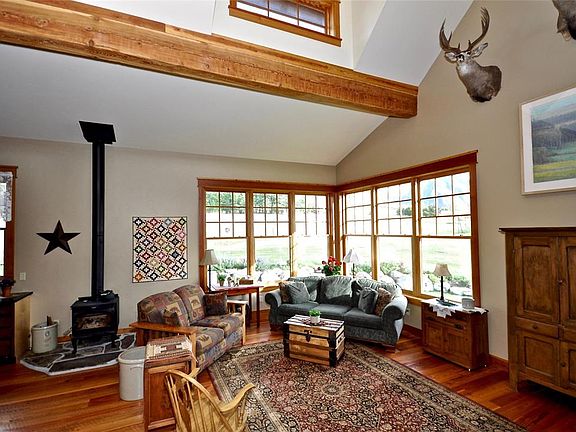Nestled at the base of the rugged Absaroka Mountains on Deep Creek in Paradise Valley is a beautiful custom home built with incredible craftsmanship in 2011. Natural fir siding and rusted corrugated metal roofing blend harmoniously with the landscape. Large windows frame the breathtaking views and illuminate the gourmet kitchen, breakfast nook, and living areas. A well-appointed main floor master suite with ensuite bath has a separate tub and walk-in shower. The second story hosts a large second bedroom with 3/4 bath. An unfinished guest suite built over the garage has a separate entrance and endless opportunities. The exceptional outbuilding built in 2006 near the creek has 3500 sf, 2 bathrooms and a kitchen. Currently a successful wedding venue, it has unlimited potential. Extensive landscaping across the property beautifully showcases perennial flower beds, fruit trees and a large garden. This very rare, unpretentious beauty is the perfect Montana home or getaway.