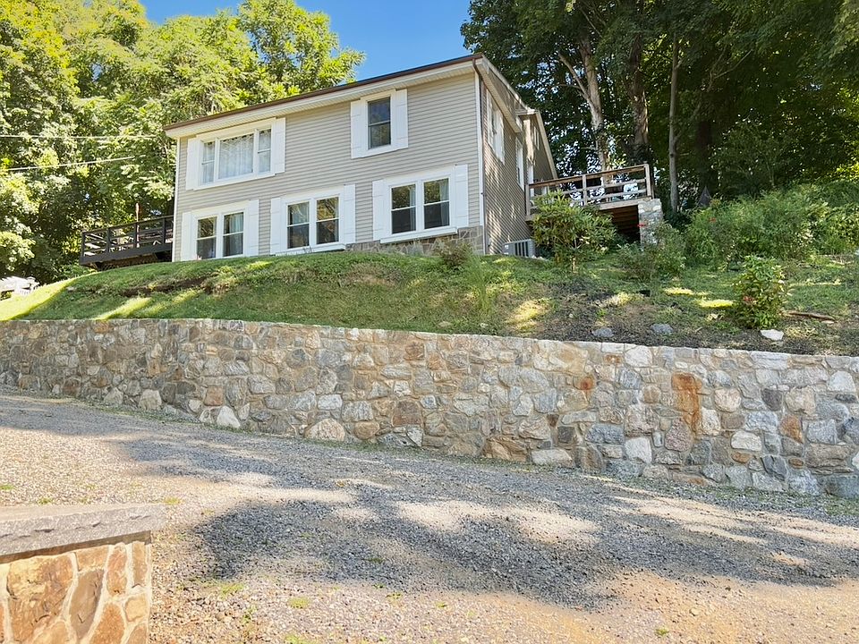 Tranquil and peaceful setting. Beautiful water and mountain top views from 3 decks with cabana awning. 3 bedrooms and 2 full bathrooms. Feel like you're on vacation all year! Charming private home with stone fireplace. Beautiful master suite with bathroom and balcony deck. Entire home updated. Vaulted pine ceiling, Bright large kitchen with granite countertops and stainless steel appliances. Large driveway with landscaping, stone walls, post lights, farmhouse shed, and lots of parking. Crystal chandelier in dining room. Upscale private lake community in very nice neighborhood. Border of Newtown and close access to 1-84. Minutes from Southbury or Newtown center. Excellent credit required. 2 months security. Lawn care/cutting included. Maytag washer & dryer. No smoking. Central air conditioning. This is a must see! $2950 Ask for Cindy 1 year lease. 2 months security.