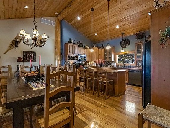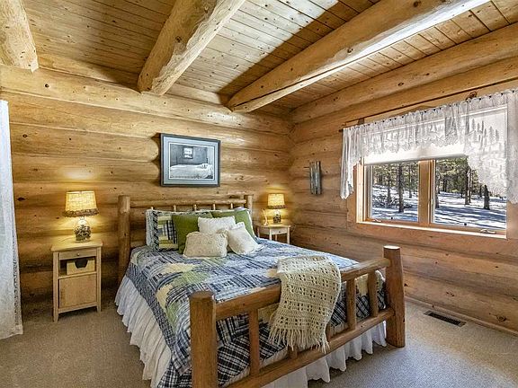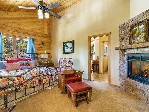 Spacious handcrafted log home minutes from Angel Fire Resort. Gourmet kitchen features knotty alder cabinets, large island. Master-suite has gas burning fireplace, huge bath with soaking tub, copper ceiling, and radiant heat. Walk-in closet. Kitchenette downstairs for the kids! Beautiful views of the valley from decks offer outdoor living at its best. No Angel Fire resort dues.