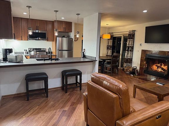 Available only from April to November at the monthly rate. Escape to this 2/2 deluxe condo in the heart of picturesque Snowmass Village. This adorable property features 2 bedrooms, with a cozy king bed in the master bedroom, and two charming twin beds (convertible to a king) in the second bedroom. The two bathrooms are well-equipped with eco-friendly amenities, heated floors, and an 80-gallon commercial water heater. A washer/dryer (W/D) is available in the unit, complete with laundry supplies. This condo has been beautifully remodeled throughout, with a new, well-equipped kitchen with high-end appliances and cookware. Brazilian Cherry hardwood floors, new carpet, and modern furnishings. Cozy down pillows and comforters with 1,000 thread count linens for bedding, 55" Smart TV, cable, and high-speed internet. Public transportation and shuttles are right outside your door. Guests can enjoy the hot tub, sauna, and pool. A clubhouse may be rented for private events. Parking space available. The balcony overlooks a private little yard and has views of the ski area to the right and the Continental Divide to the left (the lush Aspen trees may block some of the views in the summer, but add their own ambiance and privacy). Just below the yard is the Mayfly Trail that runs along Brush Creek, leading to the Snowmass Center. Anderson Ranch and Snowmass Chapel are located across the street. This condo has homey touches that are rarely found in rentals. SMV Business License 058772. STR Code MRQAE5. Owner pays for HOA dues, renter pays electric bill. No smoking. One dog allowed. Month to month lease allowed. Lease options flexible. One parking space provided.