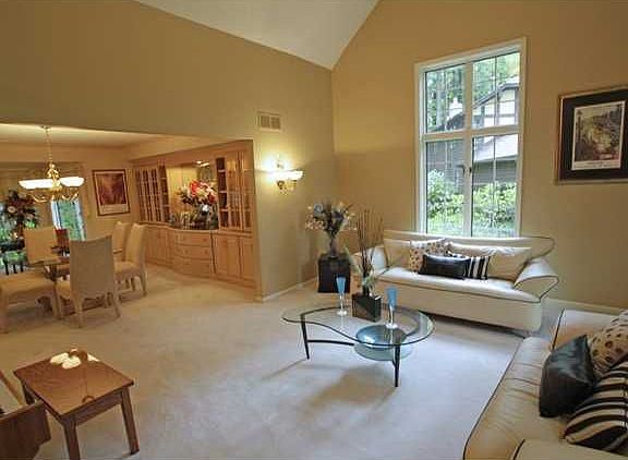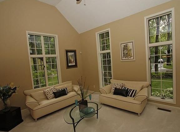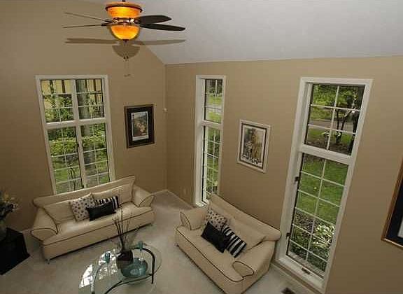 Brick front home with elegant open floor plan! Set on wooded cul de sac lot, this model home clone is loaded with upgrades including; soaring cathedral ceilings, natural light throughout, modern eat in kitchen with breakfast bar and slider opening to patio for ease of entertaining, spacious master suite with whirlpool tub, 1st floor bedroom or office with attached full bath, family room with wooded lot view and floor to ceiling bricked fireplace, professionally finished basement as bonus room "escape". Elegance in style and comfort in living. A beautiful setting and a must see!