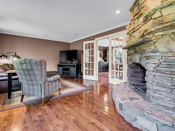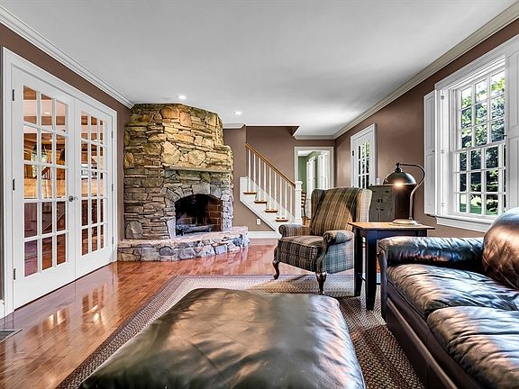 Experience peace & relaxation at this unique custom-built Cape home, offering a blend of elegance & comfort. Upon entering, you'll be welcomed by a fieldstone fireplace that warms the living room. Open kitchen features quartz countertops, SS appliances, a fireplace, a breakfast nook, a 2-tier island, & a coffee bar w/ Sub-Zero fridge. The sunroom is a delightful retreat you'll instantly adore.The 1st floor primary suite boasts its own fireplace, a walk-in closet, & a bathroom with radiant floors. The formal dining, adorned with detailed trim work, is perfect for special gatherings. Brilliant maple hw floors grace the 1st flr. Upstairs, you'll find 2 spacious bedrms and another full bath. Outside, enjoy the serenity of the gardens, relax on the patio, gather around the fire pit, or unwind in the large screened veranda while listening to the waterfall. The oversized, heated 2-bay garage includes a 2nd-floor workshop. Close to major highways and convenient for commuting