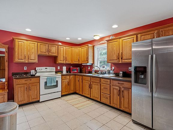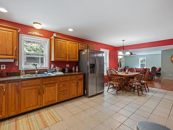 Charming Sanbornton Ranch! This three-bedroom, 3/4 bath home sits on 7.8 Acres of land (2.8 in Sanbornton, 5 in Tilton)! Open concept kitchen, dining and living room. Kitchen is efficiently designed with ample cabinet storage and counter space, pantry and ceramic tile floor. Access from kitchen to the side yard/patio. Entertain in uncrowded comfort in this spacious dining room with hardwood floors. Large inviting living room radiates hospitality and charm with the hardwood floors and the pellet stove. Primary bedroom and two additional bedrooms all with hardwood floors and plenty of closet space. 3/4 bath with custom tile oversized shower with glass doors. Laundry on the first floor and separate utility room. Front screen porch and patio area to enjoy during those beautiful summer days/nights. 28x36 detached barn that is heated with 1/2 bath and walk up to the second level for storage. This barn is accessed by either a walk-in door or full-size garage door and has a covered area behind that has several horse stalls and space for livestock. Barn also has enclosed garage/storage area with a poured concrete floor and doors that open on both sides. This lot is perfect for livestock or gardening. Beautiful perennials and privacy with a long driveway and mature trees throughout. Don't miss this opportunity, this is a must see!