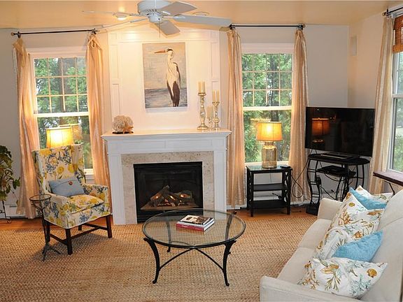 Magnificent sunset and Sheffield Cove Water views are enjoyed from this sun-filled, shingle-style cottage on a 4500 sq. ft lot. Designed by Estes/Twombly architects, it features 3 bedrooms, 2.5 bathrooms an open living floor plan, dining and living room with a gas (propane) fireplace and a gourmet kitchen. A beautiful hand-painted mural of Sheffield Cove by a local artist adds color to the powder room, while a pebble terrace with a teak overlay and manicured gardens, a sound system wired throughout the house, plenty of storage in the full basement complement the house. Only one lot away from cove access and audubon land, it's perfectly sited to enjoy outdoor activities and wildlife.
