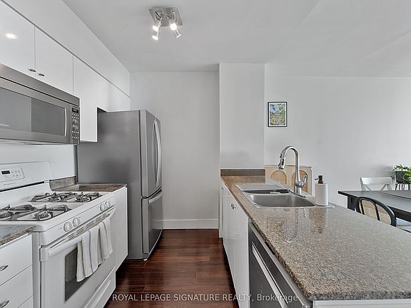 Welcome to this bright and spacious 1+den executive suite offering unobstructed, breathtaking south views of Lake Ontario. Floor-to-ceiling windows fill the space with natural light, creating an inviting open-concept living space. The modern kitchen features a gas stove, updated appliances, and ample storage. The large den offers versatility for a home office, while the primary bedroom includes large windows with serene views and closet space. The upgraded bathroom showcases granite finishes and a rain shower head. Located in one of Toronto's premier waterfront communities, residents enjoy access to an indoor pool, wellness centre, sauna, tennis and basketball courts, and BBQ area. Complete with 24-hour concierge, parking, and locker. Steps to the waterfront, Scotiabank Arena, CN Tower, restaurants, shops, and the Financial District.