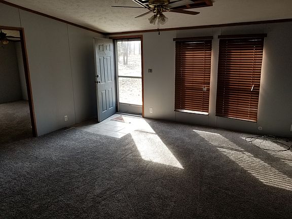 Nice 1999 Southern Comfort home on poured concrete foundation. 16x7 deck to rear of home. There is an approx. 30x40 outbuilding with 2 stalls & electric with proper floor for horses. and small utility shed on property. This property is mostly open immediately behind the home but is mostly woods to the rear of property. Floor plan is popular divided bedroom plan with master bdrm on one side of home and the 2 spare bedrooms to the other side of home. There is brand new carpet and paint throughout. The baths have been freshly tiled. A new roof was put on 2 and 1/2 years ago. The home includes a kenmoore dish washing machine , and a 2 year old whirlpool washer and dryer. A large deep freeze, and a 3 yr old troy-built riding mower. The home has had almost a complete remodel. One bedroom is pergo floored with a wainscot wall with chair rail. The house is move in ready. It is for sale by owner as is. The owner will pay no fees and only make minor changes. Asking 105,000$.