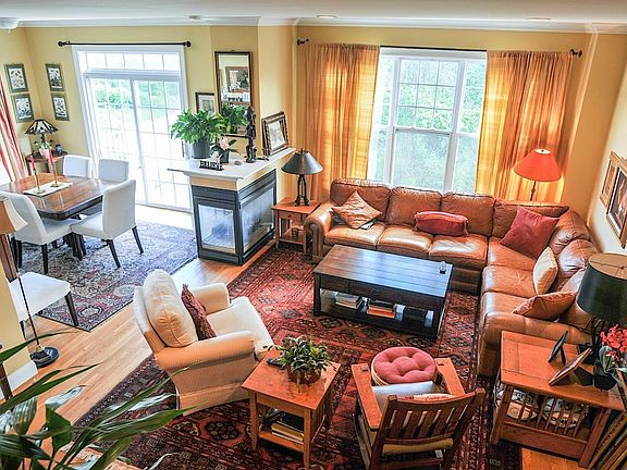 Spacious Furnished 4 BD and 3 1/2 Bath townhouse. Main level open floor plan, hard wood floors, elegant LR & DR with gas fireplace and sliders to deck from dining room. Bright with wonderful views. Eat-in kitchen w/granite countertops, SS appliances. Master bedroom with walk-in closet and cathedral ceilings. Also, 2 additional bedrooms and full bath. Lower level w/ walk out sliders, bedroom/office, family room,full bath and laundry area w/ W/D. Central air, gas heat, 2 car garage, drop down attic Beautiful landscaping maintained by the association, trash ,snow removal, sewer and water, also included. Quiet street and great neighbors. Award winning clubhouse with a large community room, fitness center, indoor basketball court. Heated pool, kiddie pool, tennis court and walking trails. Proof of employment and high credit score required. Please call me for more info. Tenant pays utilities and wifi