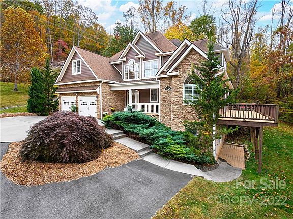Mountain-inspired living meets casual elegance in this stunning South Asheville home on a 1.33-acre private lot at the end of a stately tree-lined driveway. Gleaming maple floors, 5-inch molding, 8-inch baseboards, wood shutters and arched doorways greet you. Two-story living room with, gas fireplace, built-ins, and floor-to-ceiling windows. Upgraded kitchen with SS appliances, tiled backsplash, pot filler, five-burner cooktop, African granite counters and stone-wrapped breakfast bar. Main level primary suite w/French doors to the wrap-around Trex deck and a spa-like bath w/remodeled shower & jacuzzi tub. Work from home efficiently in the compact outfitted office. Finished basement offers a functional apartment full-size kitchen w/granite counters & European cabinetry, BR and BA. Whole-house generator. You’ll love the peaceful cul-de-sac setting complete with mountain views. Glen Merrill is a picture-perfect community only minutes to Biltmore Park’s Town Square and TC Roberson schools.