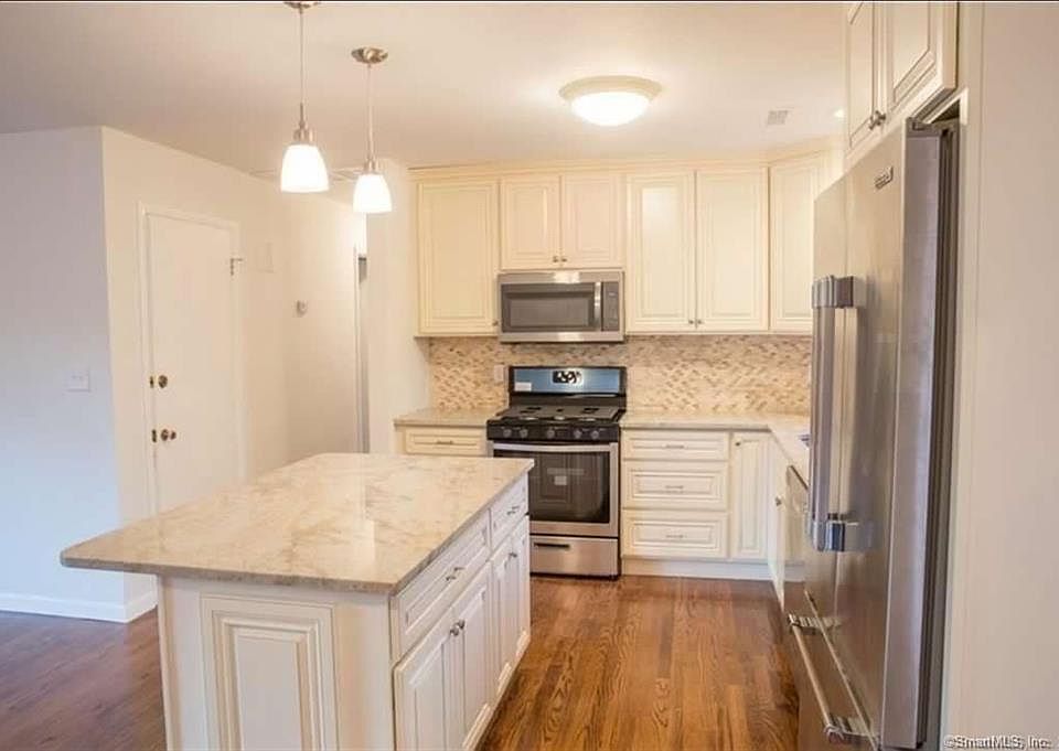 Welcome home! Don't delay to view this STUNNING updated ranch in lovely hamden neighborhood. This home boasts a beautifully updated kitchen open to a large living room with a fireplace place, formal dining room with a sliding door leading out to a large pressure treated deck with a gorgeous view of the massive backyard, 3 great sized bedrooms and a newly finished basement with its own laundry room! This opportunity will not last! Roof is in the process of being replaced, will be done prior to closing, driveway is newly paved, solar panels are being financed and hot water heater is leased from UI.