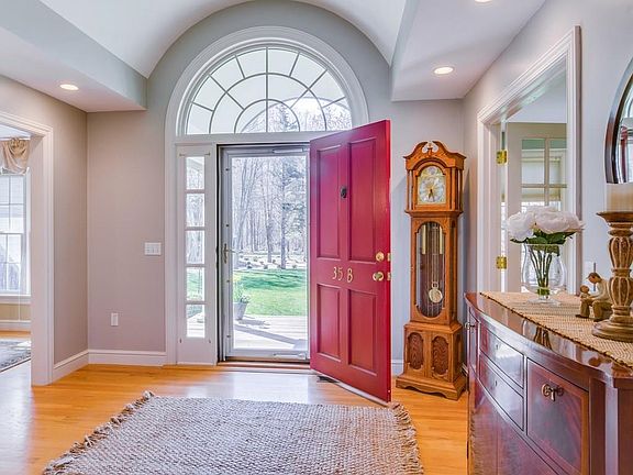 Quality and tranquility abound in this casually elegant 4 bed, 3 bath home in the beautiful compound of Meadow Tree Farm. Open and flowing from its granite kitchen with custom made maple cabinets, stainless steel Bosch appliances and center island, to the stunning family room with brick fireplace and woodstove insert, cathedral ceilings, and French doors leading to the rear mahogany deck. Enjoy hardwoods on the main floor, radiant heat, a master suite, office (or another first floor bedroom), and elegant dining room. The 2nd floor offers 2 spacious bedrooms, a full bath, storage and a large bonus room/bedroom. Central air, heated and cooled garage, and top of the line Buderus heating system. Home is privately set on 3+ acres of stone walls and lush landscaping with plenty of room for a pool or horses if desired. Location has easy access to highway, URI, train station and beaches.
