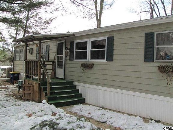 Looking for a DOUBLE WIDE w/ some privacy? Here you go...Corner wooded lot, covered front porch, LR leads to DR or Den w/ gas stove, Huge eat-in Kitchen w/ all appliances & sliders to private covered deck...Some new windows, oil heat, 3 BR's, 2 Full baths, and Laundry Room. Park fee includes: water, sewer, trash.