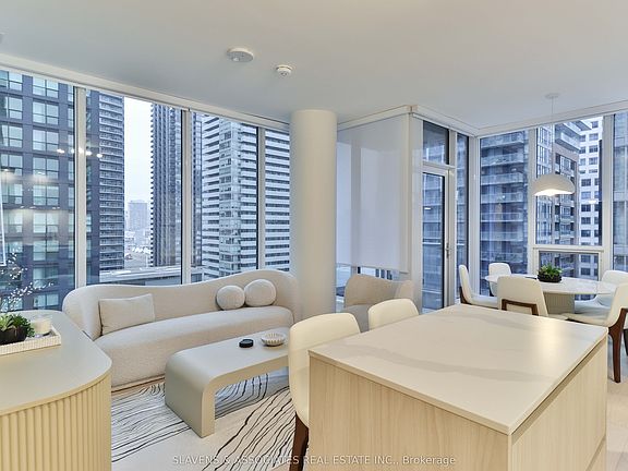 Enjoy Floor To Ceiling Glass Panel Views Throughout Filling The Suite With An Abundance Of Natural Light. The Premium Light Color Scheme Shows Off The Modern Open Concept Living/Dining/Cook Area Which Includes An Island With Overhang For Casual Dining. The High-end Miele Premium Appliance Package Includes Refrigerator, Oven, Convection cooktop, Dishwasher and Premium Miele Laundry Appliances. This Suite Has Spa Inspired Bathrooms With Upgraded Fixtures And Finishes, Including Glass Tub/Shower Enclosures. Both Bedrooms Have Premium Upgraded Mirrored Closet Doors, Complete With Closet Organizers. The Popular Nobu Residences Is Located In The Heart Of The Entertainment District. Enjoy The amenities This Iconic Residence Has To Offer, From Concierge Services To State Of The Art 5 Star Hotel Amenities, Including World Class Dining, Rooftop Terrace, Meeting and Recreational Rooms, As Well As A World Class Gym. Conveniently Located; Walking Distance To Union Station, TTC Transit, CN Tower, Rogers Centre, Metro Toronto Convention Center, King West, And The Financial District, World class Restaurants and Cafes and More.