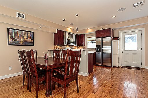 Townhouse with 2 DEEDED parking spaces!! This 3 Bed 2.5 bath has all the space you have been looking for. Open first floor living room and kitchen. Open concept kitchen has Marble counters and stainless steel appliances, enormous living room with gas fireplace and lots of natural light. 2nd floor features a full bathroom and 2 large bedrooms each with their own walk in closets. Entire 3rd floor is a Master Suite. Master suite has enough room to set up a king size bed and a separate seating area. Large walk in closet, Mstr bath with his and hers sinks and a whirlpool tub. 2 deeded parking spaces one of which is the corner space so it is possible to actually fit 3 cars. Roof rights with roof deck plans included. Wired for whole house audio, intercom on all floors, laundry in unit, central air. Very close to T station. No showings till first open house 3/14