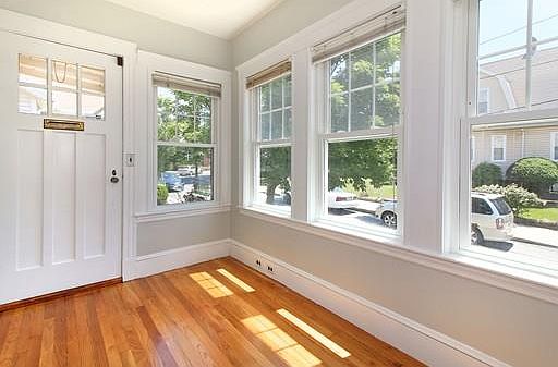 Freshly painted and sparkling! Wonderful Colonial Bungalow style home that offers potential for expansion and features beautiful turn of the century details. From the well preserved hardwood floors that gleam to the gorgeous natural light bathing the main living rooms, as well as pretty moldings and built-in china cabinet, this 2 bedroom home will charm. Both bedrooms are generously sized and host excellent closet space. Eat-in kitchen and mudroom, bonus third floor would make for a great conversion to additional finished space and a welcoming front foyer. 3/4 bath in the lower level plus room to make that man-cave a reality. Driveway parking and a garage. Enjoy evenings on the private front porch. Steps to area shops, bus to Wellington and easy commute to major routes.