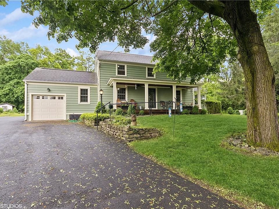 Welcome to 35 Monell Place! Charming 1940 colonial home with Hudson River views, stunning sunsets from your front porch, on a beautiful piece of property - a gardener’s paradise! Follow the blue stone walkway and stone walls to the welcoming front porch with classic pillars. This three bedroom, two and half bath home, boasts a stately living room, with plenty of room for entertaining, built in bookshelves, wood-burning insert fireplace, handsome mantel, plenty of light, and views of the front and back yards. Convenient private office or studio with separate entrance, perfect for working from home. Formal dining room with bay window overlooking patio and heated salt water in-ground pool. Updated kitchen with new stainless steel appliances, plenty of cabinets, large pantry, peninsula with seating, and a cozy breakfast nook. Powder room conveniently located by the back hallway, which leads to three season sunroom by the pool. Salt water pool has new liner, pump and heater. New stone patio and pergola. Professionally landscaped perennial gardens, with an abundance of flowering trees, evergreens, hydrangeas, roses, peonies, lilies, boxwoods and Japanese maple. The sprawling lawn is perfect for bocce and soccer. Newer 300 square foot art studio with skylights and total privacy. Two additional gardening sheds on the property. Second floor has primary ensuite with updated bathroom, soaking tub, glass shower, double vanity, radiant heat, built in wall cabinet, and walk in closet. Two additional bedrooms share full bathroom with skylight and glass sliders. Hardwood floors throughout, new wooden replacement windows, central air conditioning, exterior painted in 2023, natural gas conversion and whole house natural gas generator. Full basement with laundry and plenty of room for recreation. Additional laundry closet on first floor. One car garage. Experience the serenity of Monell Place yet minutes to Beacon's bustling Main Street, Southern Dutchess Golf Course, DIA:Beacon and Metro North Railroad. Lovely  home! Additional Information:  Amenities:Soaking Tub,ParkingFeatures:1 Car Attached,