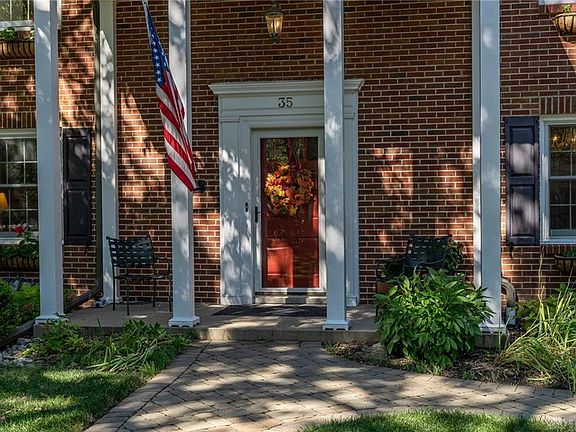 This classic, brick center entry Colonial home has been meticulously maintained & totally updated. Current owners added a much sought after 1st flr bedroom w/ full bath plus a luxurious 2nd floor bath w/vaulted ceiling & skylights. The third full bath is in near perfect original condition & features a tub & separate shower. Sunny dining room features 2 built in corner cupboards w/shell top detail. Charming eat-in kitchen features soapstone counters, custom cabinets & pantry Other extensive updates include; insulated replacement windows, newer roof, stunning paver driveway, sidewalks & patio, water softener & filter system, power, cable & telephone wire rerouted undergrounds w/additional outside outlets & wiring to center of patio for possible future fountain. LED landscape lighting. Refinished hardwood floors. Upgraded insulation & attic ventilation, insulated garage door & insulated garage walls. New HVAC (2017), New heat pump(2020). Dormers rebuilt and new lintels installed(2012).