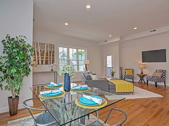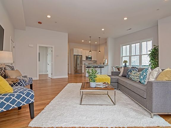 New Construction. Stunning light filled 3 bed/2 bath top floor unit with 10 foot + ceilings. Great New Price. Inviting open floor plan with a spacious living room that features a private outdoor deck. Kitchen features shaker style white cabinets, carrara quartz counters, large breakfast island, and bosch appliances. Master ensuite bedroom with marble tile shower. The sizable 2nd bedroom is adjacent to the 2nd full bath, and the 3rd bedroom provides a number of use options. Hardie siding, a paver driveway that leads to your exclusive use parking space, additional storage, and pet friendly. Located in a quiet residential neighborhood just minutes from vibrant Assembly Row, and walking distance to the future location of the Green Line T station. Great commuter location convenient to Rte. 93 and Route 28.