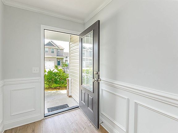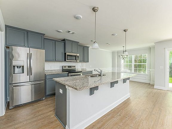 Better than New! End Unit 3 bed/2.5 bath 1660 sqft. Open concept Townhome. This upgraded townhome features Wainscoting in Entryway and Dining Area, 5 1/4 Baseboards throughout, Granite counters in Kitchen, Large Walk-in Pantry, Pendant Lighting over island with Recessed Kitchen Lighting, Gorgeous Gray Cabinets with Staggered Upper Cabinets, Vinyl plank throughout the Main Living Space. Upstairs offers Master Bed with 2 Closets, Tray Ceiling, Spacious Bathroom with Comfort Height Counters, Laundry, and 2 spacious Bedrooms with large Closets Beautiful Brick and Shake Accent exterior with 12 Pane Front Door. Back patio offers a beautiful wooded and lagoon view and lots of privacy. Tucked away near the Lake and Fishing dock, short distance to Fitness Center, Playgrounds, Dog Park, Walking Trails, and Amphitheater