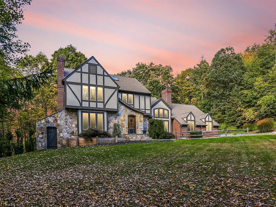 Just what you have been looking for! A secluded retreat on 4+ lush acres amid huge privacy trees with scenic views and wildlife galore! Summer breezes and natural light pour in through abundant windows. This impeccably maintained Tudor is loaded with character and modernized to perfection. The Emmy-winning owner went to great expense to renovate and expand the home to inspire musical creativity and create an escape from NYC. Beyond the elegant slate entry are gracious rooms for comfortable living and entertaining. A vaulted great room with soaring ceilings and stone fireplace, fireside living room, open dining room, library, custom kitchen, breakfast room with glass doors to outside and walk-out lower level provide social and intimate settings. A luxurious master suite, 2 large bedrooms, hall bath, office and bonus room complete the upper level. Enjoy a small-town feel with an upscale vibe minutes from town, train, shops, dining, lakes and hiking trails!