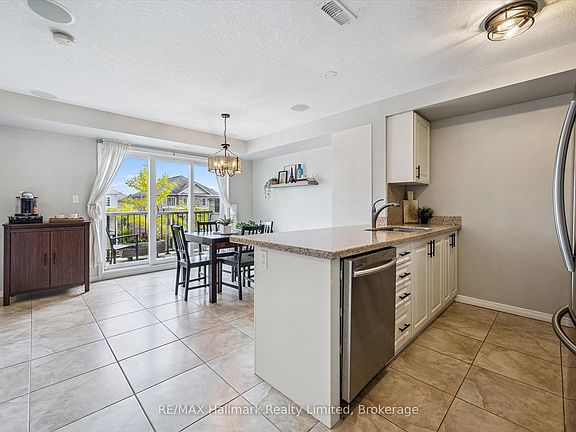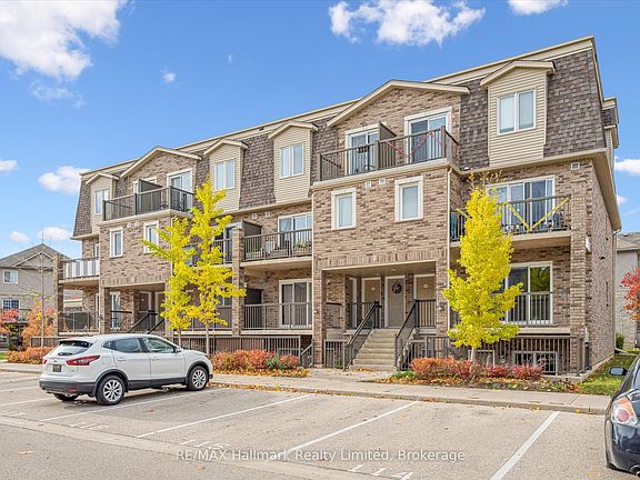 Eager to find you own place that's easily maintainable, with parking, and need 2-3 bedrooms? Be sure to check out this spacious, bright and nicely maintained 3-bedroom, 2-bathroom stacked townhouse nestled in Guelph's Grange Hill neighbourhood. Be sure to notice how the open concept kitchen offers plenty of cabinet space, and granite counters that allow for direct flow into the dining great room. Enjoy outdoor privacy from not one, but 3 balconies - a rare bonus for morning coffee, evening relaxation, or container gardening. Upstairs, you'll find 3 generously sized bedrooms, including a primary suite with ensuite access and ample closet space. The open-concept main living area is filled with natural light and features a functional layout perfect for both relaxing and entertaining, plus several places for your Christmas tree! Enjoy this family-friendly, quiet and peaceful community adjacent to Peter Misersky Park with community gardens, a leash-free dog park, and walking trails. Unit comes with two parking passes, one for the owned parking spot and one to allow a second vehicle to park in a visitor parking spot. Why keep paying $2,500 in rent every month when, with approved credit and just 5% down, you could own this home for about $2,450/month? Same monthly cost... but this time, you're building your future, not your landlord's.