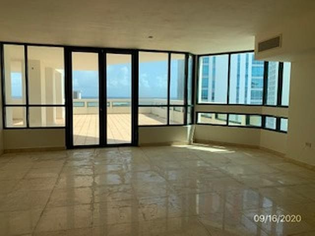 4916pc, Floor 9. Ocean and city views accentuate the property's openness and bright features. Closed kitchen with laundry room, utility room and full bathroom. Each bedroom enjoys the view, each with its own bathroom and walk-in closet. Large master bedroom and bathroom, with separate Jacuzzi tub and shower, well lit by panoramic windows. The state-of-the-art gym and pool complete the setting for a unique lifestyle. 4 parking lots plus visitor parking available. Located near the beach, the Condado lagoon, the exclusive Caribe Hilton Hotel and direct access to excellent restaurants and entertainment in the Paseo Caribe shopping area. Sold as is / where is. You need full kitchen cabinets. HOA $ 1857 monthly, CRiM $ 9000 annually, Seg 8,466 annually..