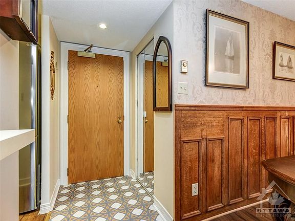 Perfect! Cozy! Convenient! This comfy, renovated, 1 bedroom walk-up apartment at Gallery Court is well appointed. Attention to detail is evident in the 2019 kitchen renovations including British inspired accent tiles, glass knobs, Rococo style brass pulls, glass fronted cabinets and rich butcher block counters. All new appliances 2019. Front entry has revival style ceramic tiles in a pleasing tulip pattern, 2019. Quality laminate flooring throughout was replaced in 2019, and the bathroom upgrades in 2021 include a new vanity, mirror and light. Dining room features architectural salvage solid oak wainscotting. Living room opens to balcony with views of the spires at Notre-Dame Cathedral. Enjoy living in the core in a quiet secure building within walking distance to GAC, the Art Gallery and Parliament Hill. Shop with ease in the market. If you need a car there is monthly parking nearby. Like a perfect jewel, good things come in small packages! 2023-06-19