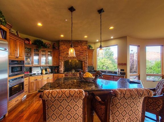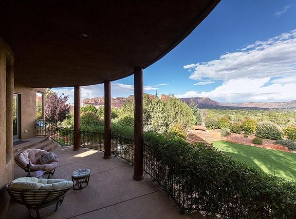 Amazing Custom built home in Sedona with Red Rock views! High quality throughout. Travertine and hand chiseled walnut wood flooring, round turret rooms, and extensive use of stone add to the Tuscany style. A chefs kitchen with stainless steel sub-zero fridge, Wolf Stove, convection oven and prep sink. Expansive Great Room with an outside deck overlooking a park-like yard. Enjoy entertaining by built in BBQ and outdoor fireplace and watch falling stars at night. There is tons of storage with a 3 car garage, extra parking spaces and huge basement. Master has a large walk in closet, sitting area, and french doors to patio. Master Bathroom has dual vanities, large soaking tub and a separate walk-in shower. This home is Elegant yet comfortable.