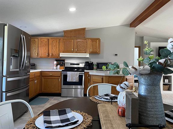 Convenient location in the Barr-Reeve School district, beautiful 3 bedroom, 2 bath manufactured home! Spacious living room open to the kitchen and the dining area. Lots of nice updates, partially finished basement with kitchen area and family room. Attached garage, a storage shed, front deck, back deck and back patio area. Tidy and move-in ready, all on 1.15 acres.