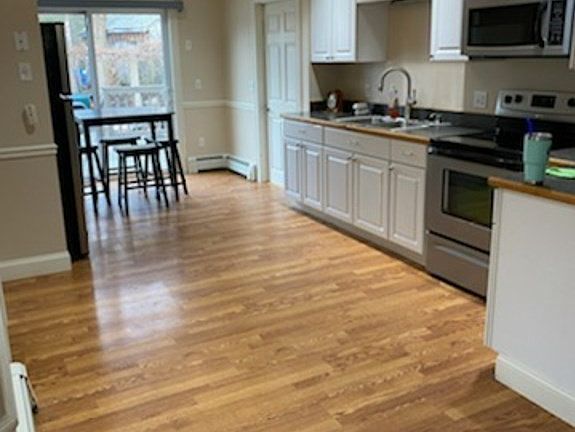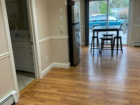 Updated 1 bedroom first-floor condo for rent located in 2-family home.Close to the water with tranquil views on Johnson Pond. Parking space right outside the unit. Single level unit with laminate floors in the living room and kitchen. Update countertops, cabinets, and stainless steel appliances in the kitchen. Start off the holiday season in this quiet and comfortable home, the unit is available now. Prospective tenants must provide a credit report and completed application and will be subject to a background check.