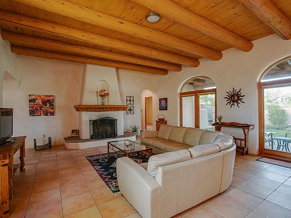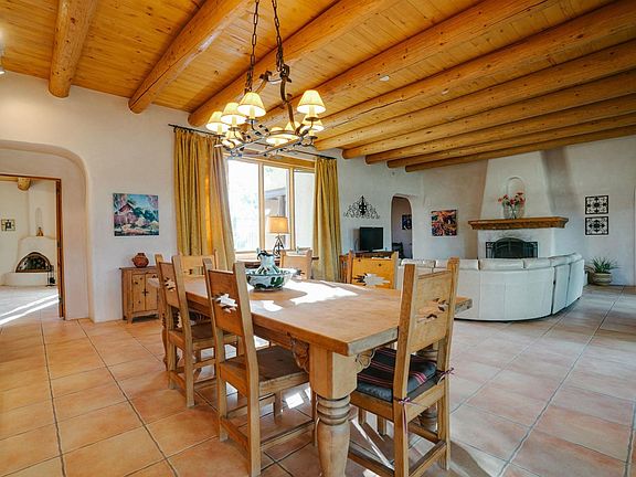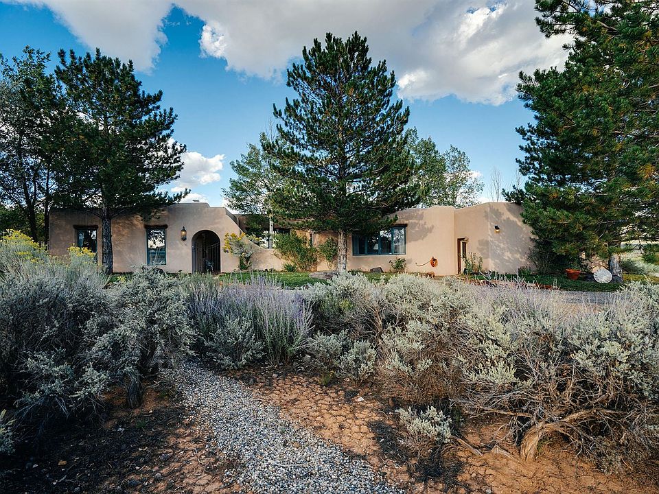Beautiful hacienda with a stellar location. This carefully designed adobe home sits near the end of a private road near the Millicent Rogers Museum. The grand living Room and kitchen have high ceilings, a floor to ceiling bank of doors facing Taos Mountain, and a wood burning fireplace. This elegant home features smooth plaster walls, vigas, quality woodwork, tile floors and great architectural detail. A large covered portal is accessed through the living room/kitchen. There is a very large laundry room/pantry with access to the 3 car garage. The master bedroom has an ensuite bathroom and large walk-in closet. There is a very charming office space which is quite light and bright. The 3 additional bedrooms are separated from the main bedroom by the living room and kitchen area. Two bedroom share a lovely large bathroom and the third bedroom has an ensuite bathroom. Amazing big mountain views and mature landscaping offer year round enjoyment.