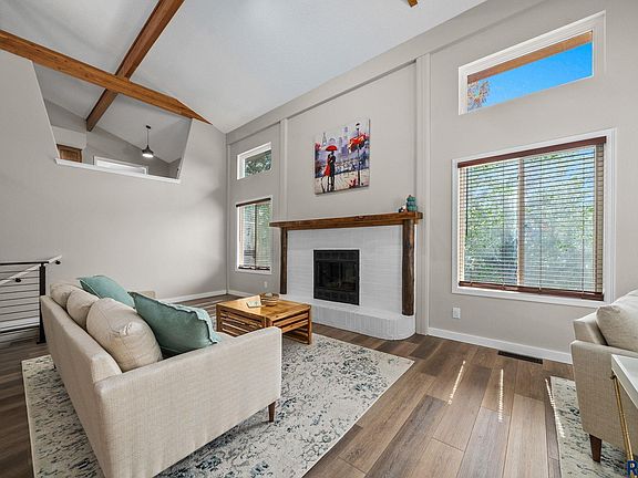The main level has been transformed with all new flooring, paint, doors, hardware, lighting, and fixtures. Step inside to a thoughtful layout: the west wing features the primary suite with a trendy shower, soaker tub, and chic design, along with a second bedroom. Moving through the heart of the home, the updated kitchen with newer stainless appliances, modern counters, and fresh finishes flows into a spacious dining room with fireplace and new double doors to a massive two-tier deck. Just off the dining room is a flexible space with French doors—ideal as a bedroom, home office, or den. On the east wing, two additional bedrooms share a beautifully remodeled ¾ bath. Convenient main floor laundry with sink connects directly to the garage.