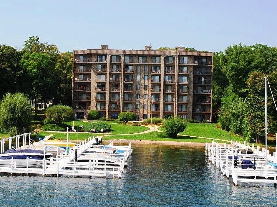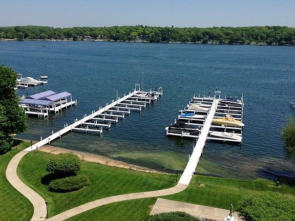 Lakefront penthouse w 30ft deepest boat slip #1 offers Sunrise & Sunset Views, Large balcony and rooftop deck w/panoramic views, setting it above all others-Incredible! Includes 3BR, 2BA, 1 car enclosed gar, spacious, light rms, great room w fireplace, family room, lg eat-in kitchen, formal dining, master bedroom suite with walk-in closet and double vanity bath In-Unit laundry, Dues Incl: Water, Cable, Trash Amenities: Indoor pool, workout rm, meeting rm and billards rm. Walk to best restaurants, spa, shops