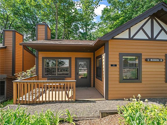 This affordable townhouse (the only townhome for sale within Alpine Village Resort), rest at the very top with grand Long range Mtn. views from the living room and deck out front & comes completely furnished and ready to go as a short term rental. This property backs up to the massive Pisgah National Forest and lies in the shadow of beautiful Mount Mitchell, highest peak east of the Rockies. This unit features a private deck just off the primary bedroom, a wood burning fireplace and nine foot ceilings. So many amenities to enjoy with mountain get-away (sleeps 4.) The club house offers recreation such as shuffle board, a pool table, a kitchen and dining area for entertaining large groups, and an outside pool, fire pit and hiking trails. The townhouse is within Mt. Mitchell Lands West section within popular Mt. Mitchell Golf Course with greens running along trout filled streams and beautiful mountain backdrops.A restaurant and bar are located close to the golf course club. All One needs!