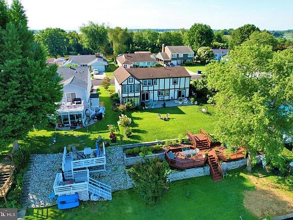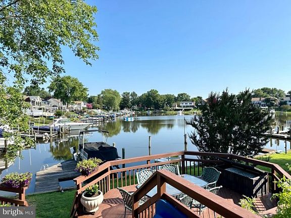 Waterfront 4 5 bedroom 3 full bath colonial on the popular Sandpiper Cove off of Taylor Creek in desired Rumsey Island. Enjoy all year on the water from your own back yard sitting on your 40 x 13 deck overlooking 75 feet of waterfront offering a private dock with small slip on left side with possibility for small boat or PWC and lift on right side and an extra boat slip between pilings. This home is filled with natural light with an abundance of windows on each level. Wood floors flow through the living room, dining room, breakfast room and sitting room of the main level. The kitchen offers tile floors, granite countertops, lots of cabinet space, 2 pantries and windows looking out to the rear yard and water. The sun room garden room can be used as a main level bedroom with an attached full bath or it can be used as an office or den. 3 sliders on the main level, one in the sitting room, one in the breakfast room and one in the sun room garden room, all lead out to the large 40 x 14 rear paver patio. The home is beautifully landscaped in the front, on the sides, and there is a gorgeous two tier landscaped garden and flowers as you step out onto the huge Waterfront deck! The upper level offers a large primary bedroom with a private bath with a soaking tub, shower, double vanity sink and water closet. Also attached to the primary bedroom is an additional room with the laundry, currently used as an office surrounded by windows to enjoy the views. The upper level has 3 additional spacious bedrooms and the third full bath. There is an attached one car garage for private off street parking and an additional space in the driveway. Rumsey Island has no HOA but you can be a part of the community by joining the RIRA. All of the roads throughout Rumsey Island are freshly paved. Convenient to grocery stores, restaurants, entertainment, major travel routes, Oasis Marina and Mariner Point Park with walking trails, piers and public boat ramps.