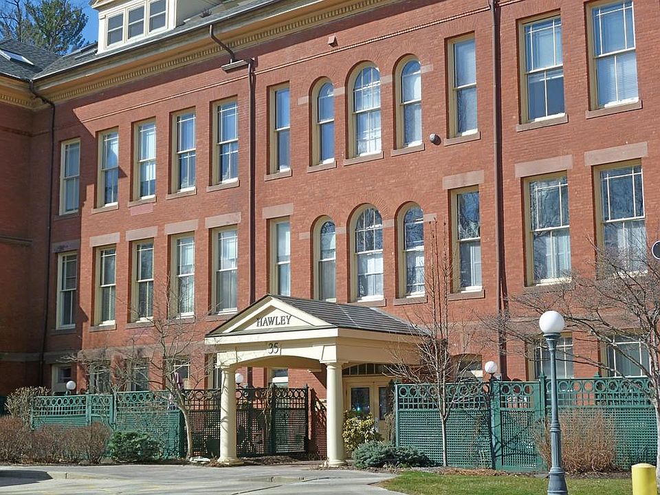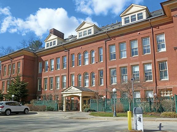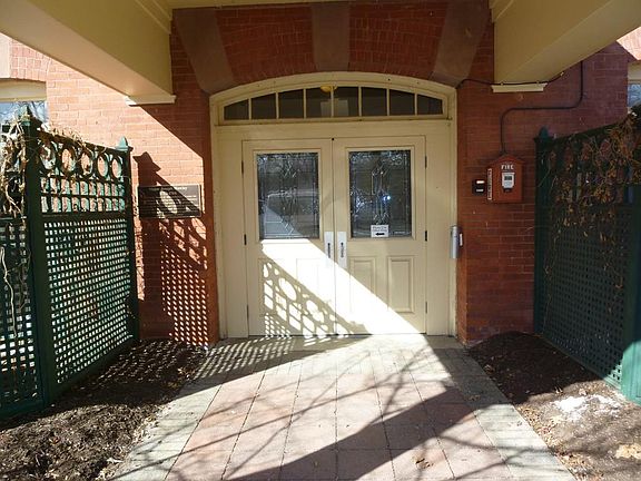 The location can't be beat! Large one bedroom condo at Old School Commons features an open floor plan, hardwood floors, high ceilings, and lots of storage. Updated kitchen and bath with granite counters and remodeled cabinets. Gas heat, central air, 2 parking spaces.