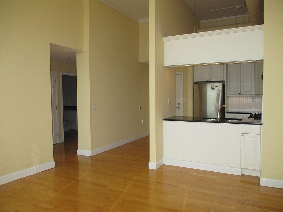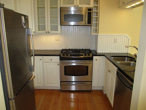 This sunny condo in Old School Commons has lots to offer! The kitchen has a gas stove, refrigerator, dishwasher, garbage disposal and a dining counter. This opens to the living room which has twelve feet high ceilings and large south facing windows. The good sized bedroom has ample closet space. The bathroom has been remodeled with a spa like walk in shower. This condo has wood floors, central air, gas heat and hot water. Included in the rent is gated off street parking, snow removal and trash removal. No smoking on premises. Rental fee of 60% of one months rent due with application. If applicable is denied the fee is returned in full. Landlord takes first and security for move in (no last).