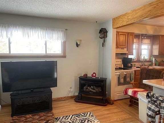 Nicely updated 2 bedroom, 1 bath home in Gile. Located 1/2 block from the Gile flowage and a couple blocks from the snowmobile/Atv trail. Kitchen with oak cabinets and a peninsula for extra dining. Cozy living room with plenty of natural light. Formal dining area. 2 bedrooms both with new carpet and a full bath. The bonus room/office has a nice size closet and a patio door leading to the stamped concrete patio. Maintenance free exterior. 2 car detached garage and an additional shed for plenty of storage.
