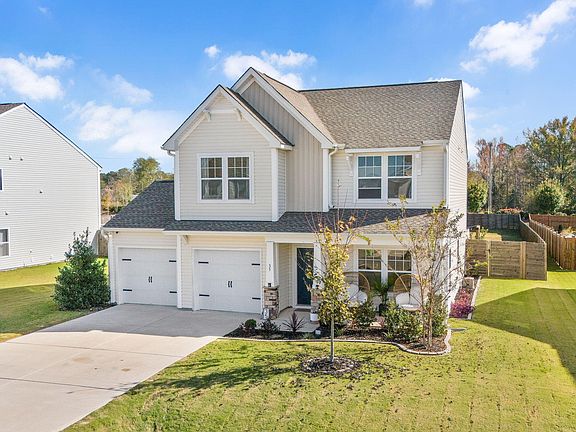 Move in ready and available immediately! Enjoy life in this lovely, recently built, open, airy and sun filled home, located in a small and friendly neighborhood in growing Harnett county. Relax on your rocking chair porch overlooking a good sized front yard. Inside, enjoy open concept living starting with 9' ceilings and a large living room, beautiful, big kitchen featuring granite counter tops, tile backsplash, tons of storage and a huge island for casual dining. Enjoy more dining options in your formal semi-open dining area with lots of big windows for natural light. Newer LVP flooring has been installed throughout the main level. The large 2 car garage with ample room for storage also enters into the main living area where you can enjoy the convenience of a custom drop-zone, closet and comfortable powder room. Heading upstairs, you'll enjoy more recently installed LVP, an awesome loft hang-out area, a good sized main bathroom with newly installed luxury porcelain floor tiles, utility closet and large laundry room. How can you not enjoy lounging in your large and bright primary bedroom, primary bathroom with dual vanities and big walk-in shower, plus a large walk-in closet featuring newer LVP flooring and a custom closet system? You can't! Two additional well sized and sunny bedrooms are also on the second floor. Enjoying your life continues out back, where your huge, flat yard is completely surrounded with a real wood privacy fence. Dine under the shady pergola or grill, grab some rays or check out the stars while you enjoy rocking on a huge custom made swing that flanks a porcelain tiled and no-maintenance turf patio area. Enjoying your life to it's fullest is what this impeccable home is all about, and its ready and waiting for you now!