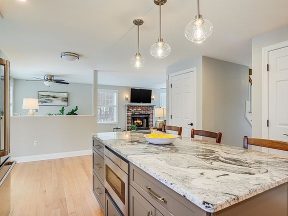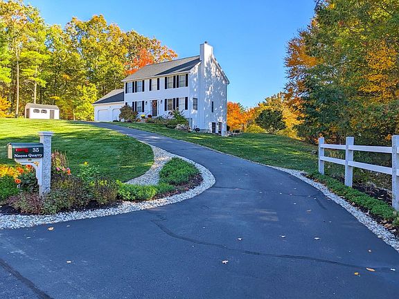 SUNDAY OPEN HOUSE CANCELED! Simply STUNNING! This immaculate 3 bedroom colonial in much-loved Noons Quarry is set on a beautiful pie-shaped lot that nestles into the woods with expanses of lush new lawn and gorgeous landscaping worthy of a golf course! Set up high on this quiet dead-end road, you will immediately feel at home as you step into the bright foyer and catch a glimpse of the brand new kitchen right out of a magazine...a tasteful granite island with microwave drawer, new fridge, gas stove with vent hood, dishwasher and farmhouse sink make up the center of this lovely home. Nearby is a comfortable living room centered on a wood fireplace and a bright breakfast nook/sitting area that makes a great office overlooking the back yard. Also on this floor are a spacious formal dining room as well as a handy laundry room/powder room as you enter from the 2-car garage and a large screened porch for parties and relaxing! Upstairs is a large primary bedroom suite with vaulted ceilings and an oversized ensuite bathroom complete with walk-in closet. Down the hall are 2 more well sized bedrooms and another full bathroom ready for living. You will love the new matte finish oak flooring throughout the home as well as a days-old furnace, newer roof, well pump and chimney cap...the list goes on! Situated only 7min from Milford Oval with its restaurants and businesses, 10min from Rt 101 and groceries, this special spot is surrounded by woods and trails.